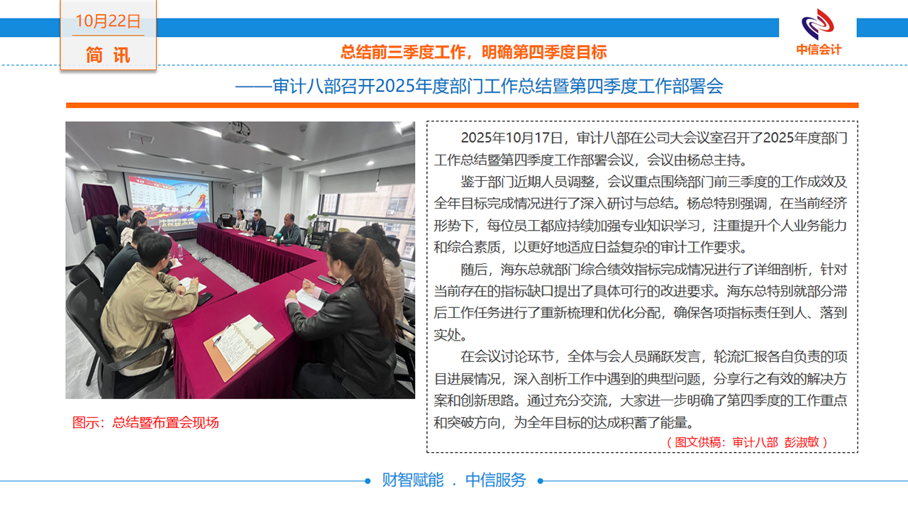 ——審計八部召開2025年度部門工作總結暨第四季度工作部署會 -
