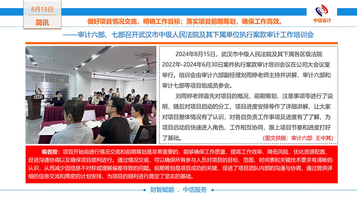 ——審計六部、七部召開武漢市中級人民法院及其下屬單位執(zhí)行案款審計工作培訓(xùn)會 -