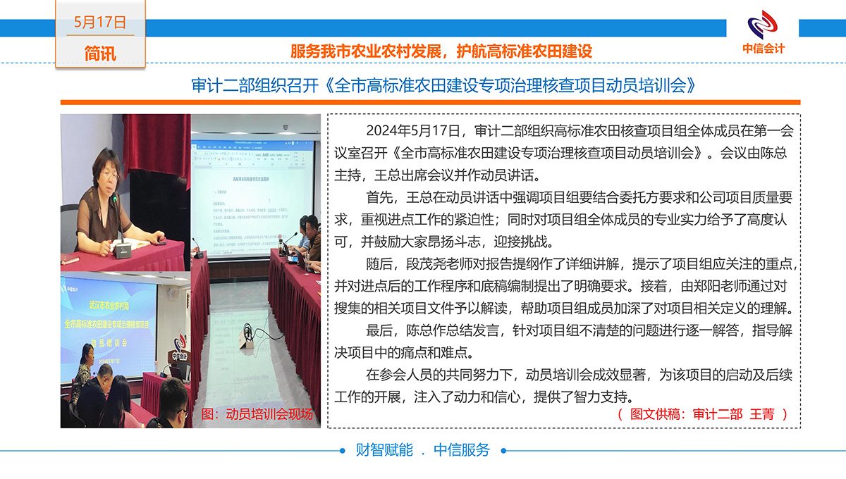 ——審計二部組織召開《全市高標準農(nóng)田建設專項治理核查項目動員培訓會》 -