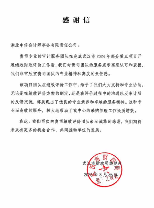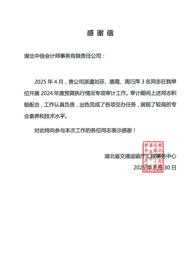 湖北省交通運(yùn)輸廳工程事務(wù)中心感謝信