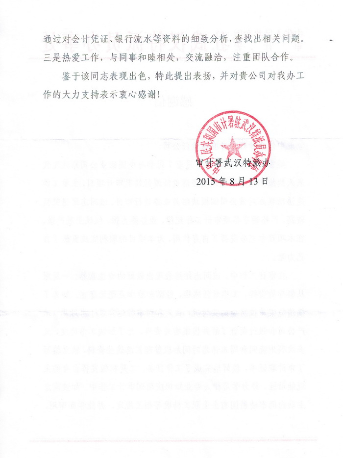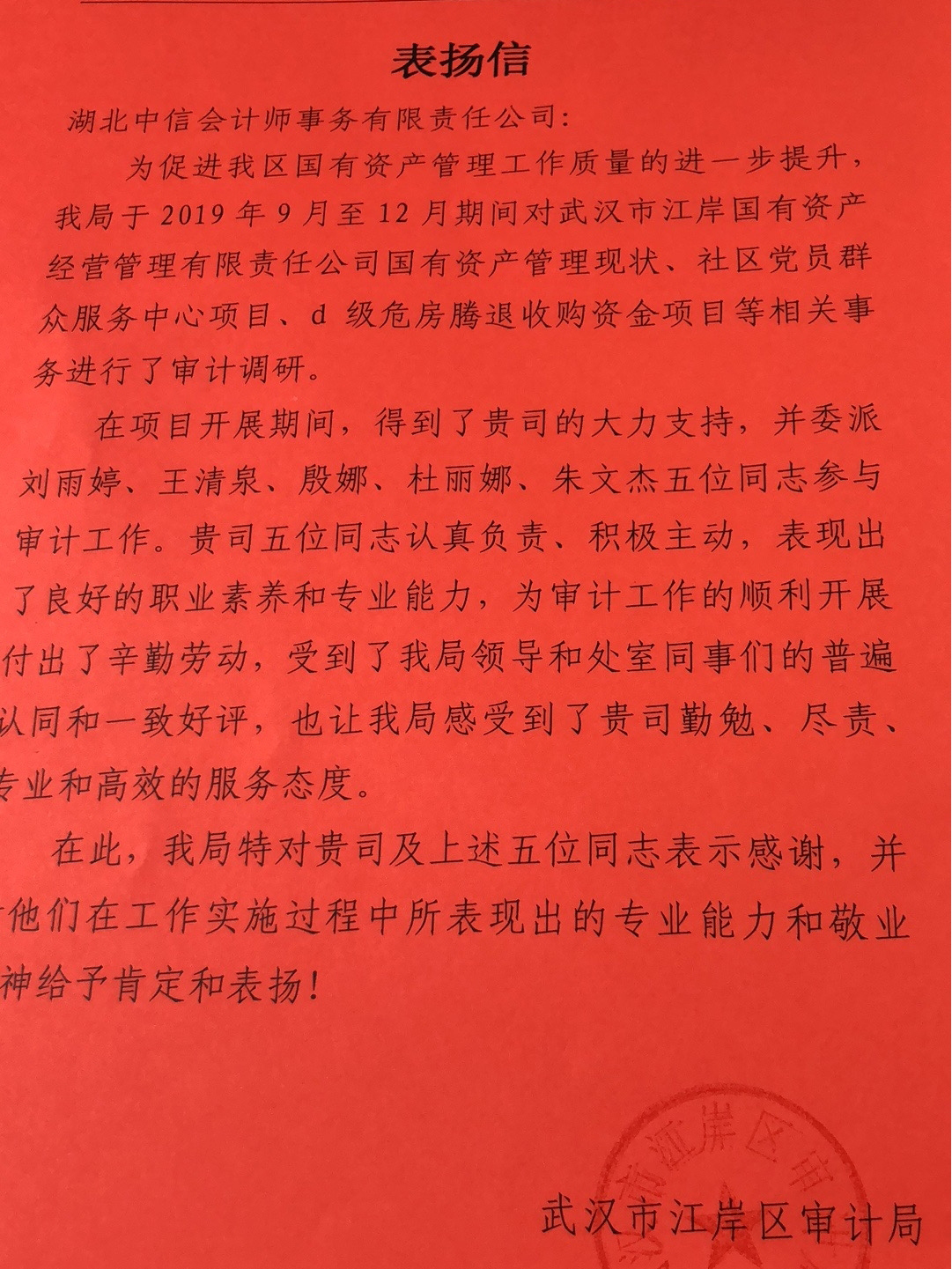 武漢市農(nóng)業(yè)綜合開發(fā)辦公室績效評價(jià)項(xiàng)目感謝信