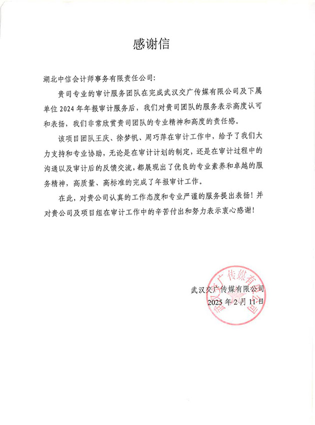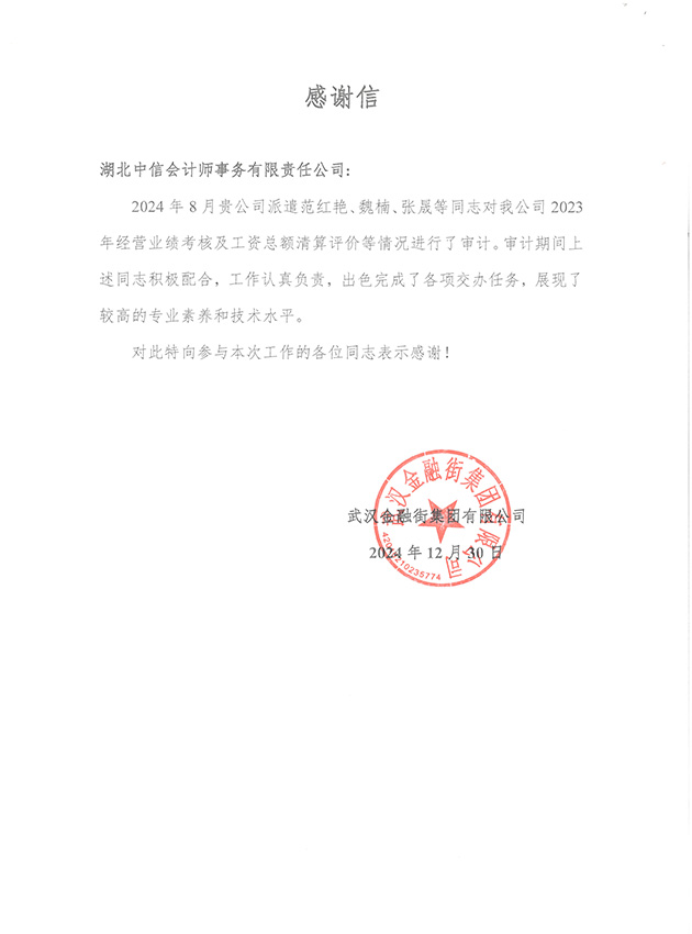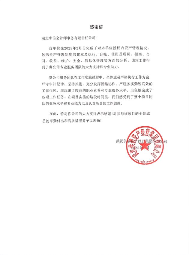 武漢供銷資產(chǎn)經(jīng)營(yíng)集團(tuán)有限公司感謝信